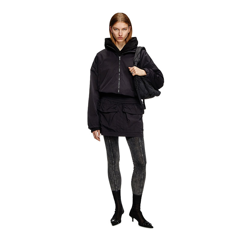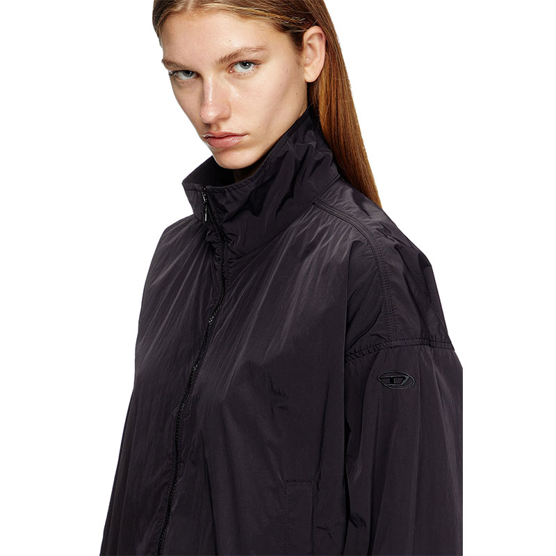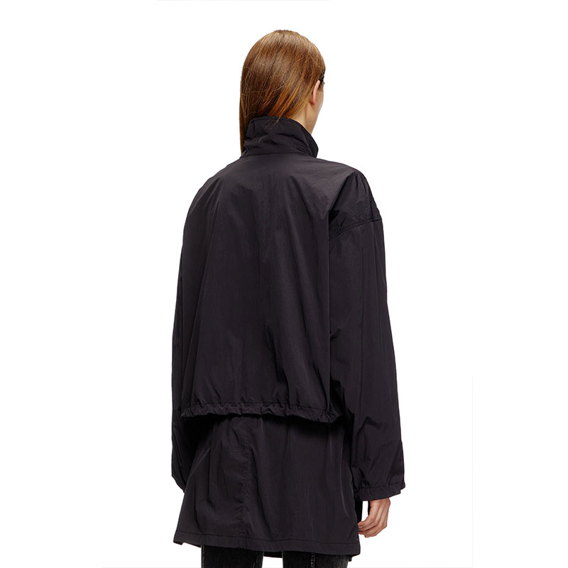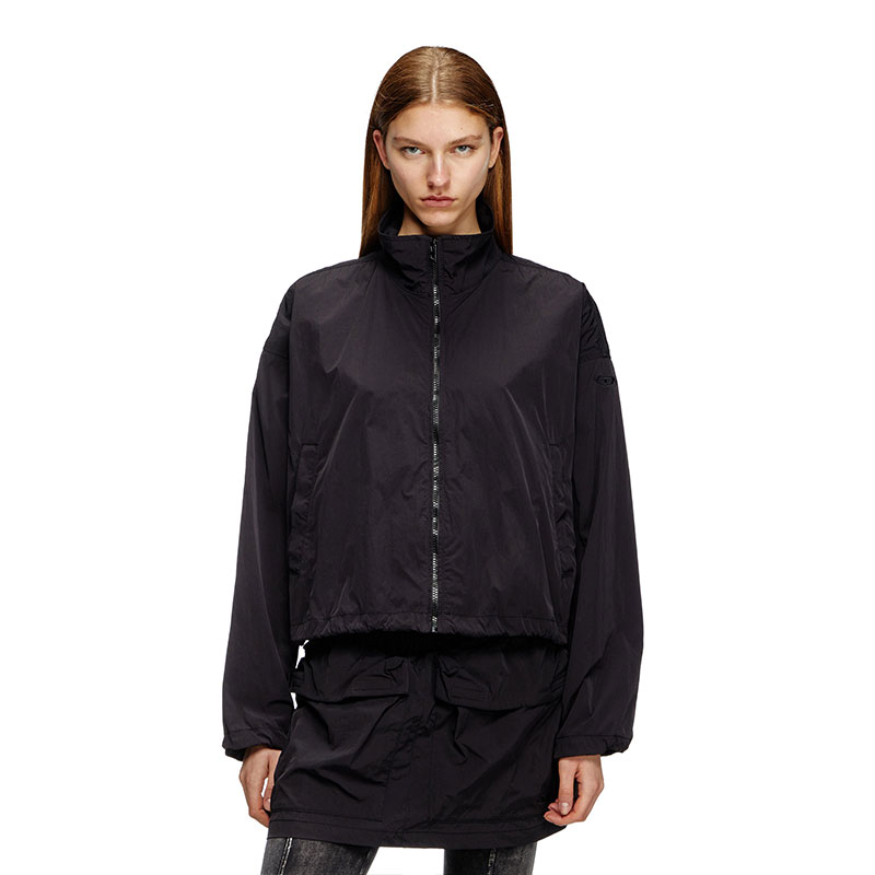 This women’s windbreaker jacket is cut from recycled-nylon shell with a wrinkled finish. Due to its compact construction, the fabric is hard-wearing and geared to resist water. It has a roomy fit with drawstring-adjustable cuffs and hem, and a tonal Oval D logo embroidered on the sleeve.