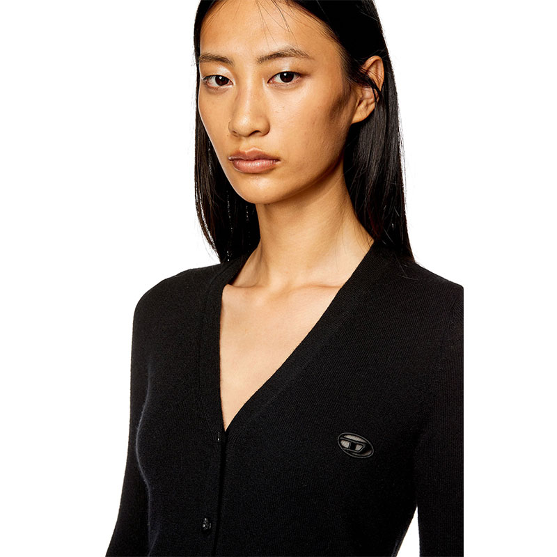 This women's V-neck cardigan is knitted from a sumptuous blend of responsibly sourced wool and recycled cashmere. Designed for a close fit, it fastens with tonal buttons and has a cut-out and embroidered Oval D revealing slivers of skin at the chest.