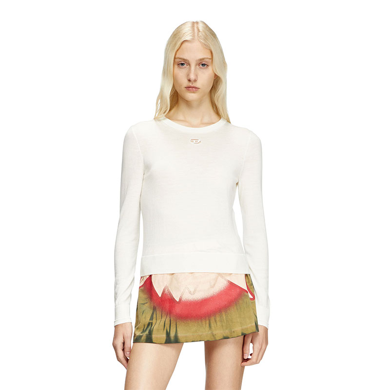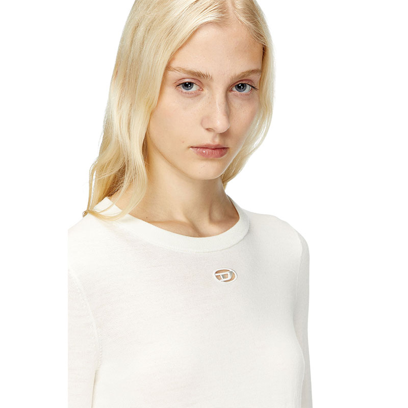 This women's fine-knit sweater is elevated with subtle yet distinctive details. The cut-out embroidered Oval D logo allows for a flash of skin or underpinnings, while ridged-effect ottoman stitches give the cuffs a little more dimension. It's spun from responsibly sourced wool in a regular-fit profile.