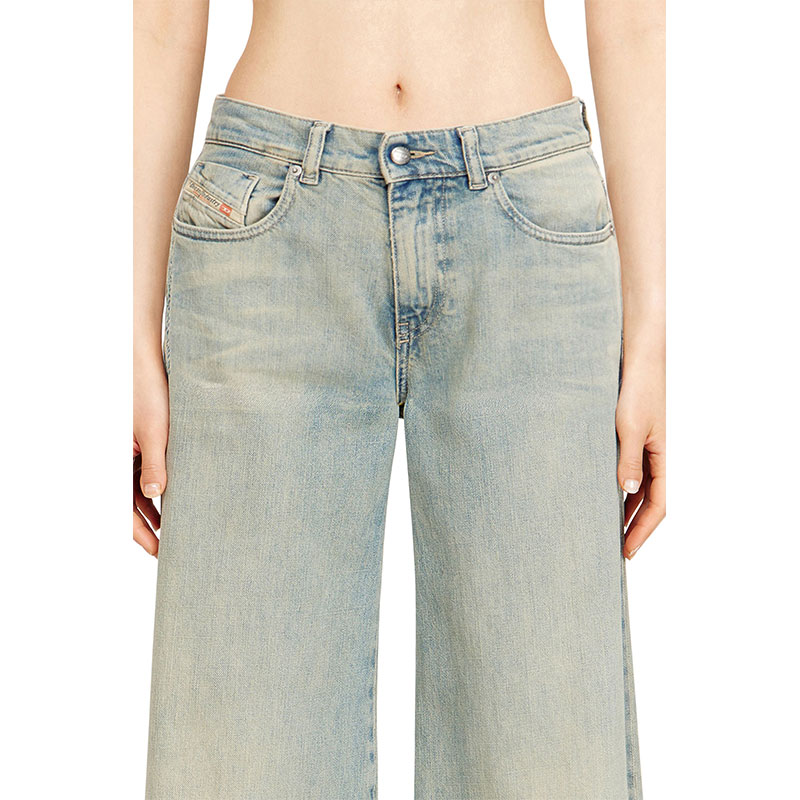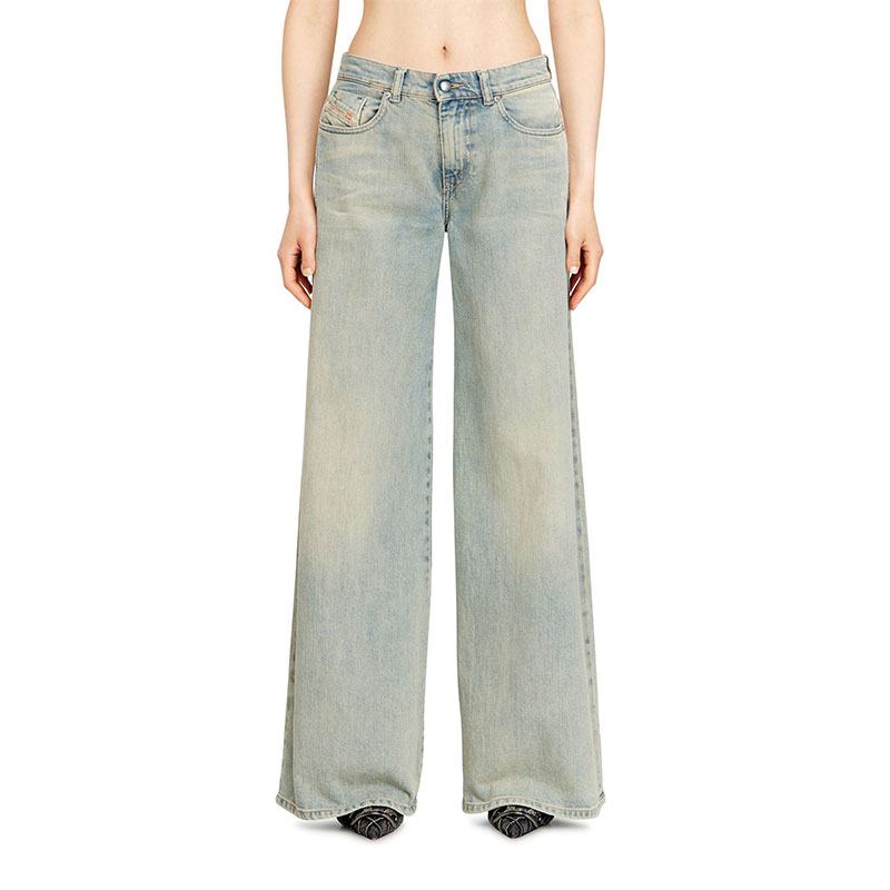 Made using regenerative cotton, this comfort denim offers a medium blue wash that embraces a naturally used look. Multiple stone-wash techniques and mineral earth pigments lend a dusty, dirt-inspired finish, enriched with subtle fading throughout. Part of Diesel's DNA selection of essential, iconic washes.