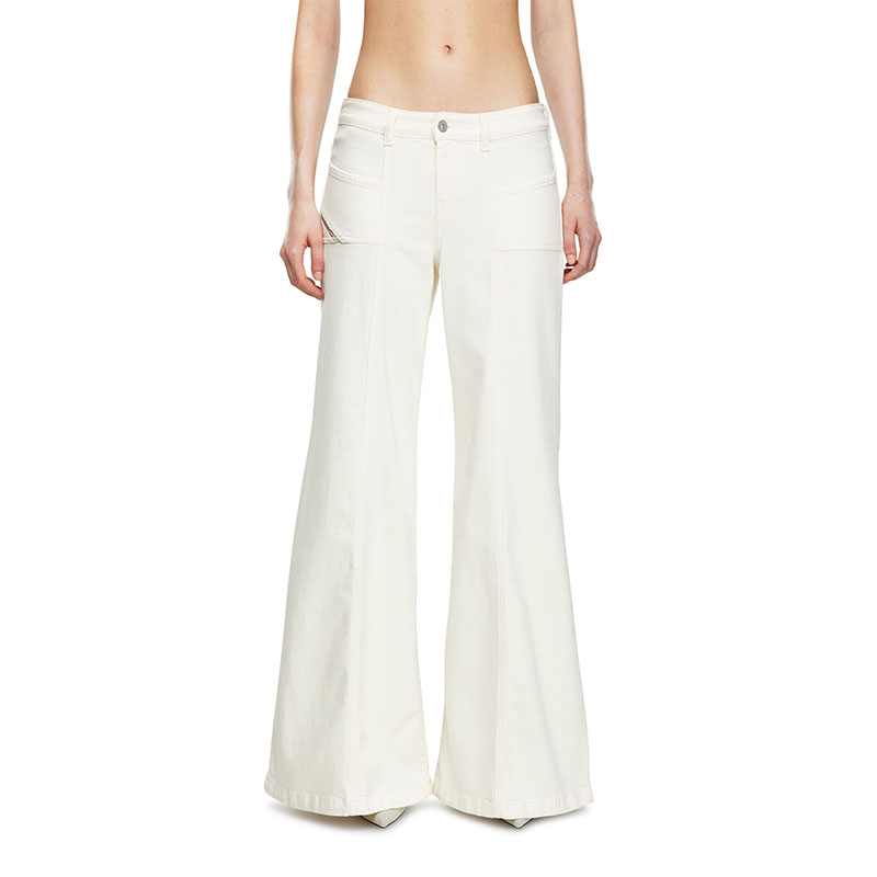 Flared style with a regular waist, inspired by the dance club looks from the '70s. The front pockets nod to the iconic "Hush" Diesel jean.