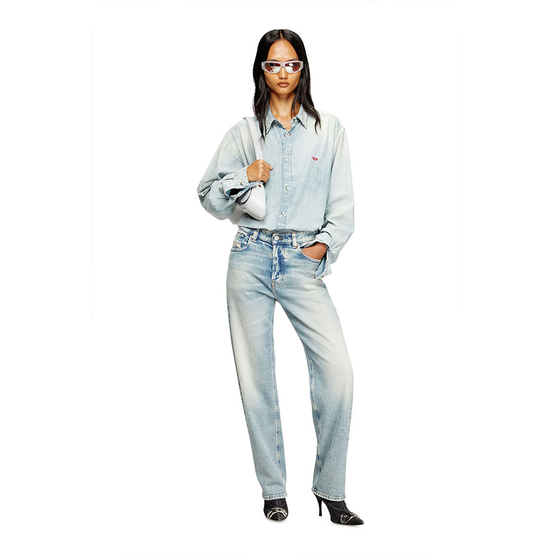 Made with partially recycled cotton, this comfort denim is a DNA piece. It features a light blue wash with a subtle dirt effect.