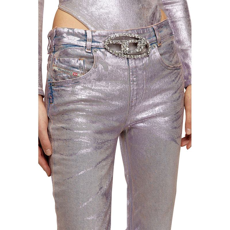 Slim style with a regular, shaped waist and straight leg. This contemporary silhouette is easy to wear and channels an authentic attitude. The waistband is inlaid with a sparkling metal Oval D logo, entirely covered in crystals and finished with skin-baring cut-outs.