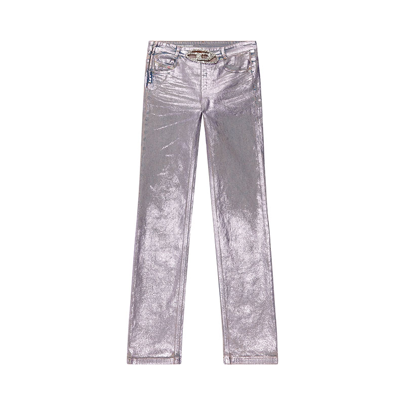Crafted from comfort denim, this pop-colour wash combines two distinctive Runway codes for an instantly recognisable, high-octane finish. The fabric is treated with dedicated artwork that recreates whiskers and used effects, then pressed with a sheet of Mylar foil to enhance the vintage look.