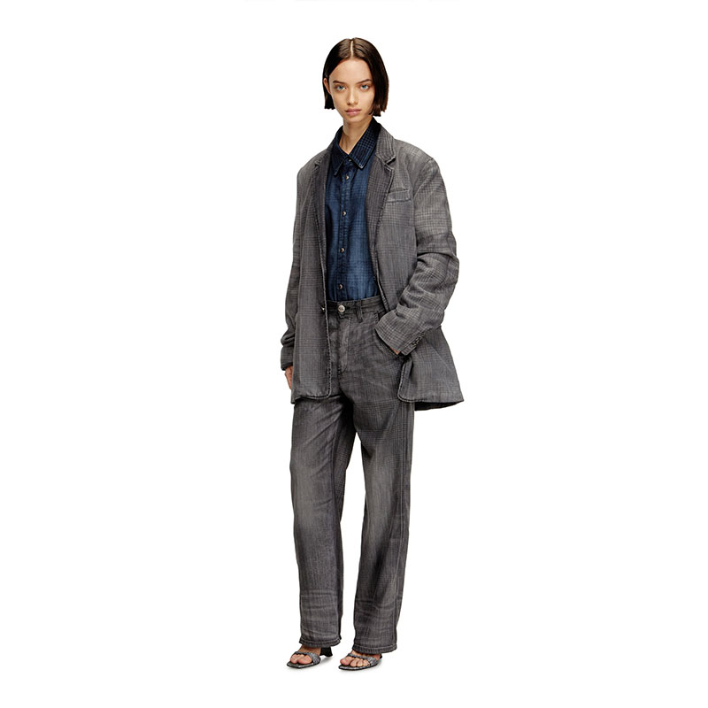 Made from a blend of organic cotton and TENCELLyocell, this fix denim fabric is smooth and fluid. The grey wash combines a traditional Prince of Wales pattern with carefully designed whiskers where the garment naturally folds when worn. A final spray technique intensifies the tonal contrasts.