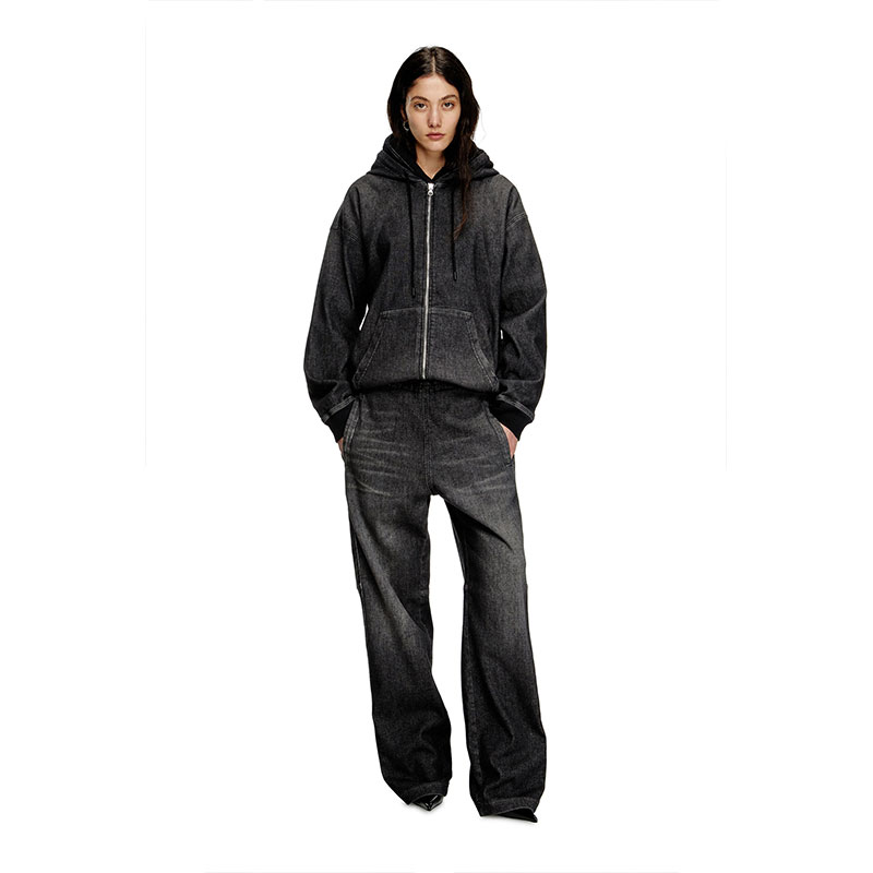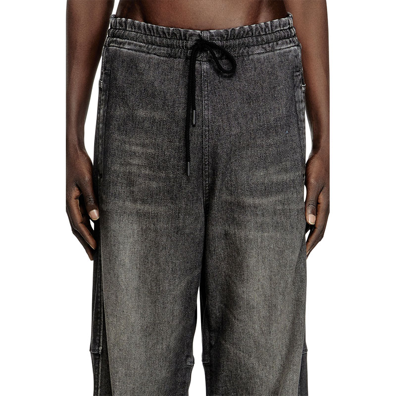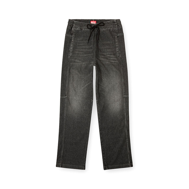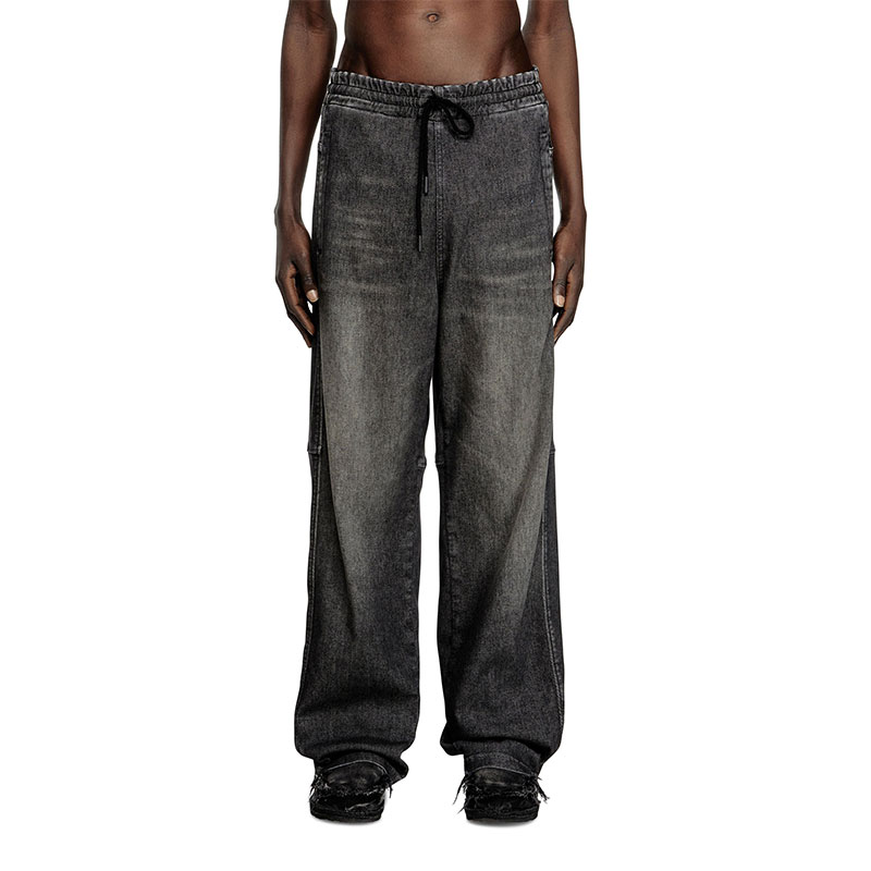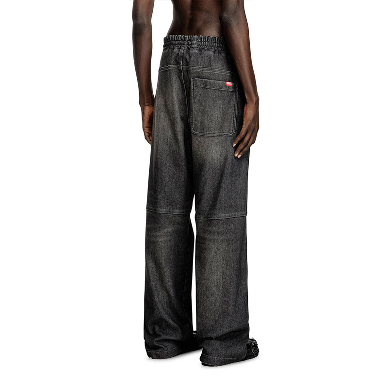 Relaxed fit with a medium elasticated waist, low crotch, and long wide leg. Made from Track Denim to express a cool, genderless attitude that nods to authentic street culture and 90s silhouettes. Detailed with a single patch pocket on the back.
