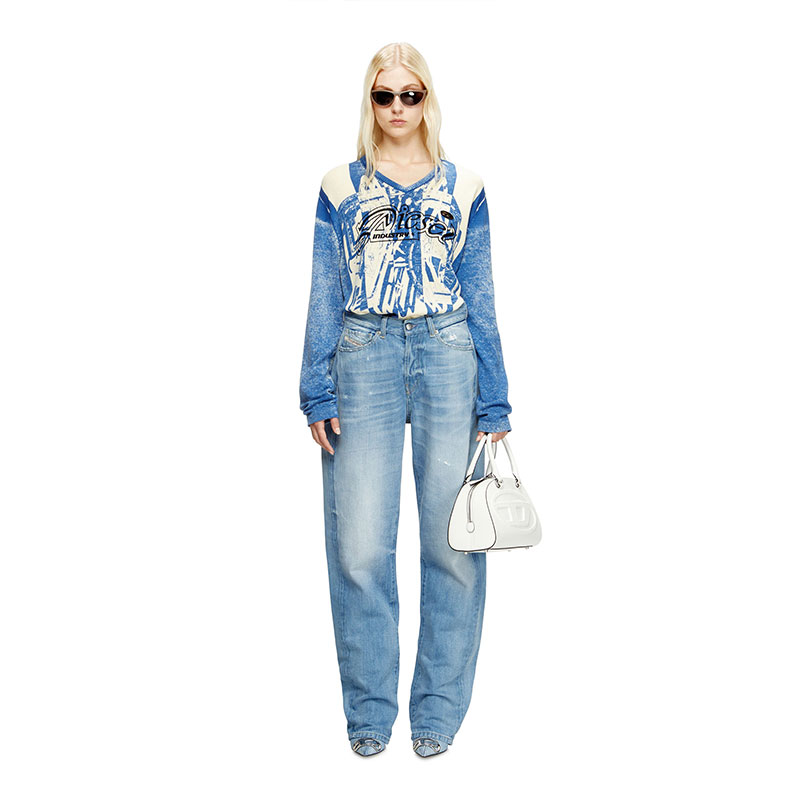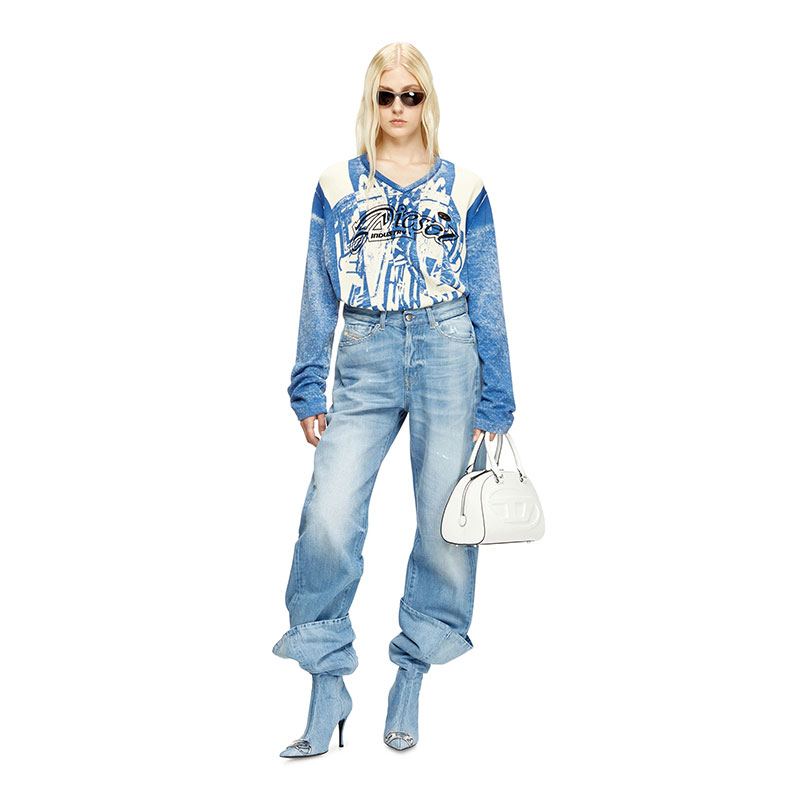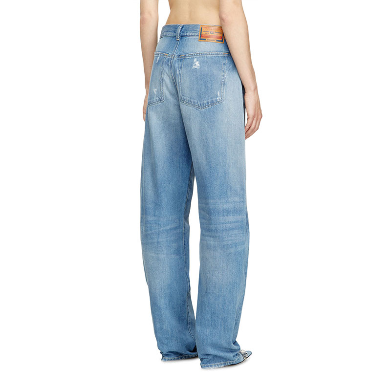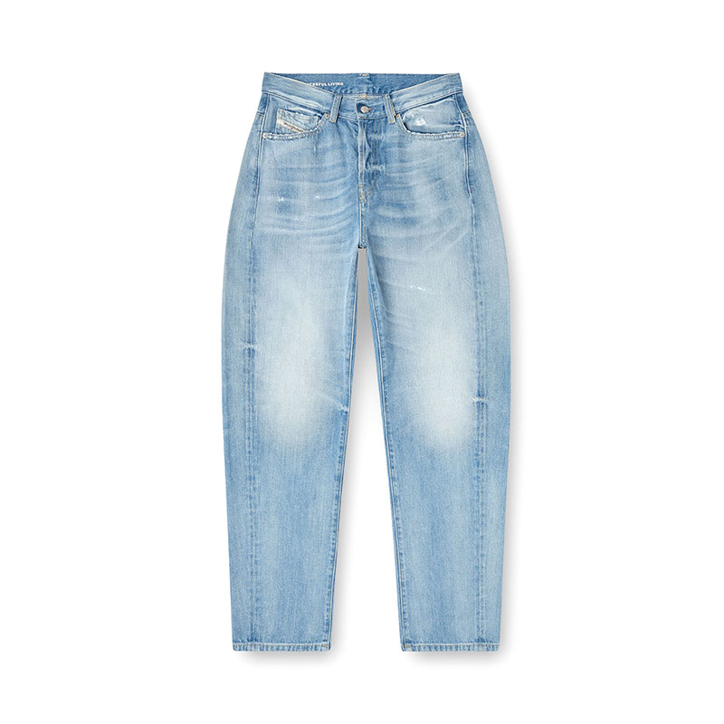 A DNA wash, this light blue fix denim is made using partially recycled cotton. Subtle treatments impart a soft used look.