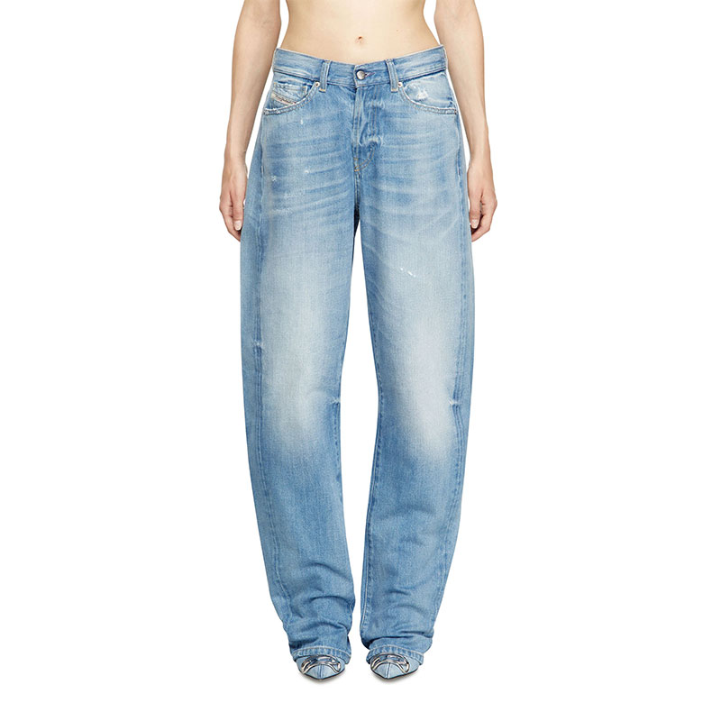 Relaxed fit with a high waist and wide leg, characterised by a curved barrel silhouette that's both current and versatile. Fastened with a button fly.