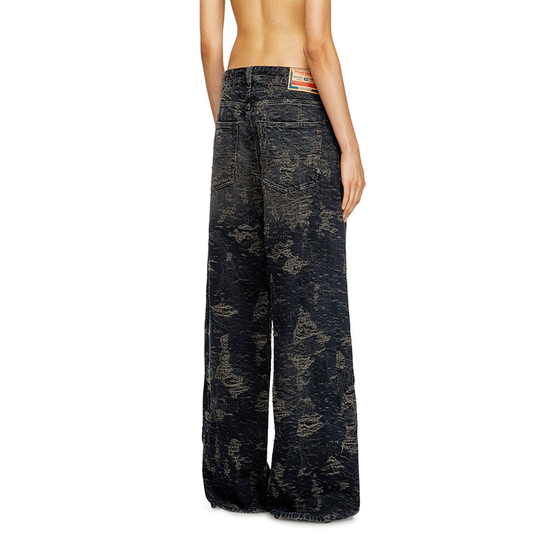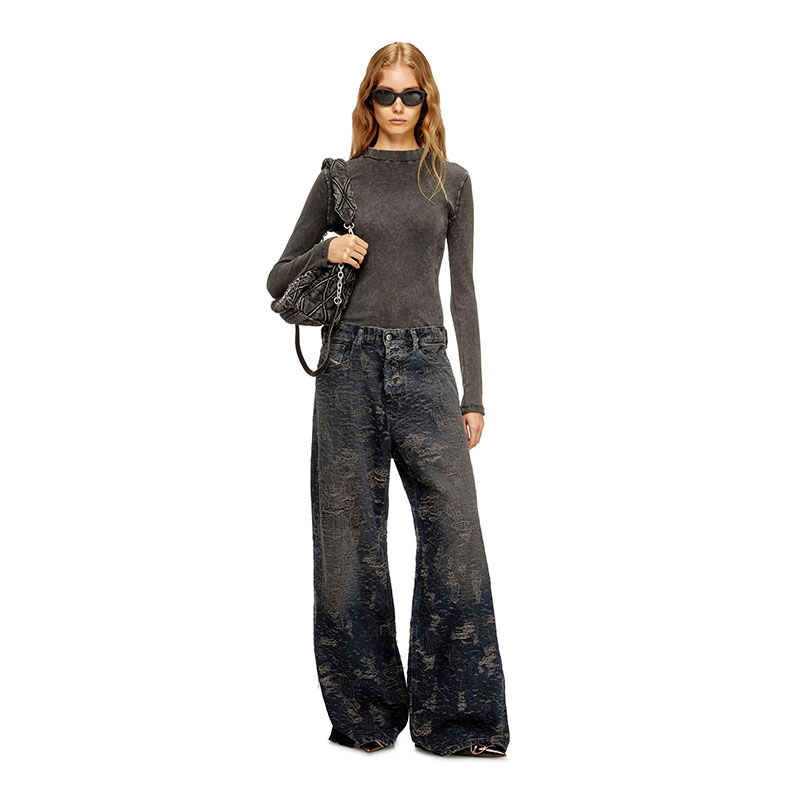 Crafted using organic cotton, this statement wash in shades of blue, black and grey channels Diesel's raw and experimental DNA. The jacquard-weave fabric is woven with floating threads for a raw, broken look that's totally intentional.