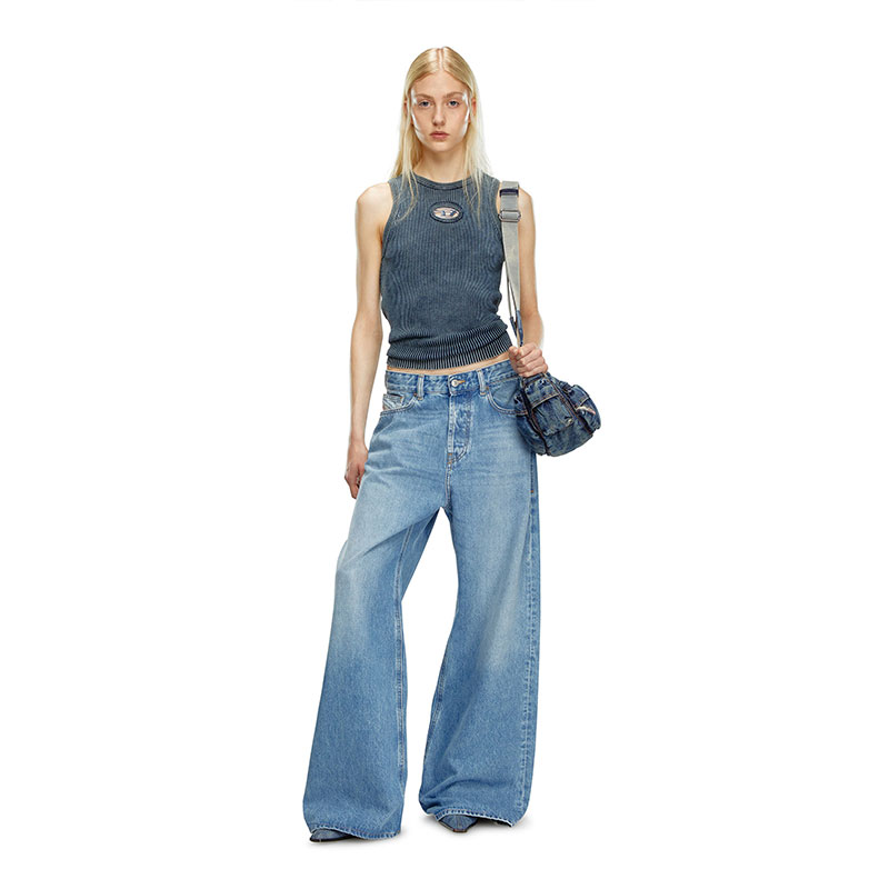 Relaxed fit with a low waist and low crotch, and extra-long wide leg. The loosest of our denim silhouettes, cut to make a drapey, oversized statement. Button fly.