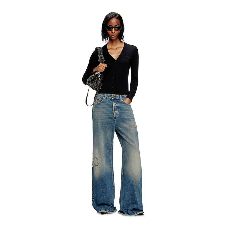 Relaxed fit with a low waist and low crotch, and extra-long wide leg. The loosest of our denim silhouettes, cut to make a drapey, oversized statement. Button fly.