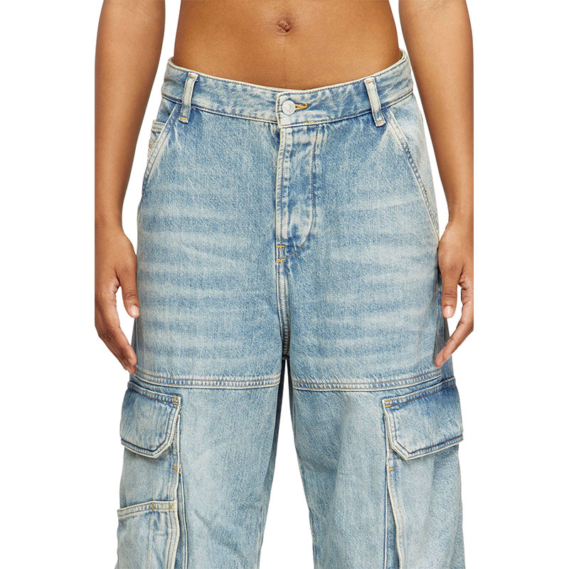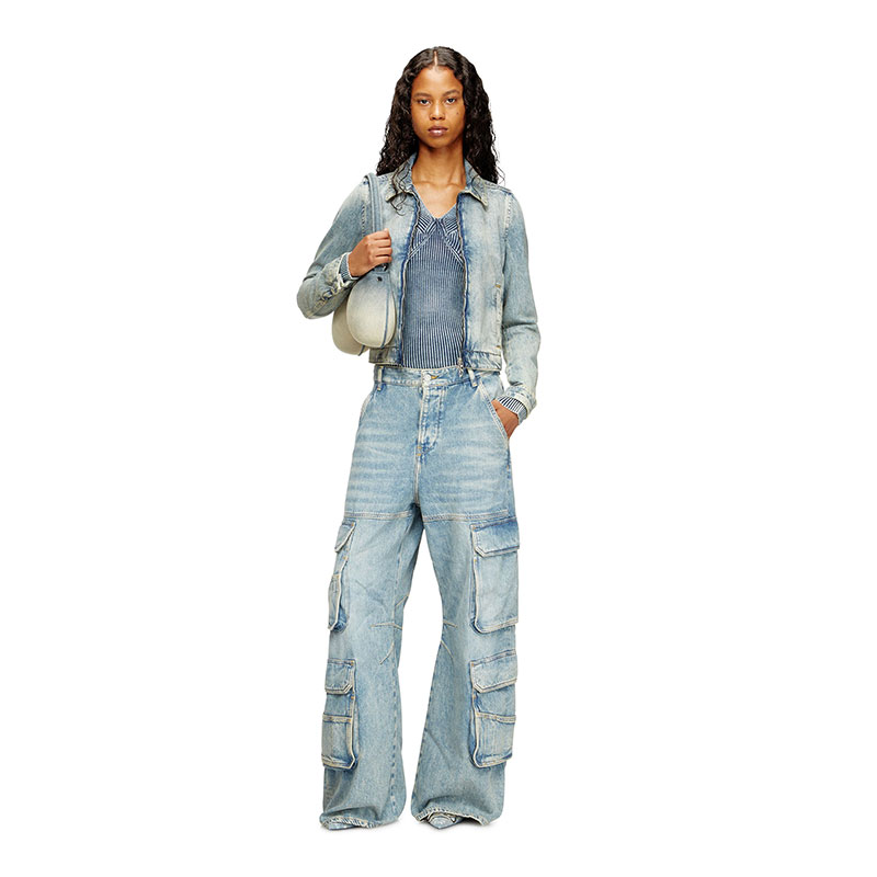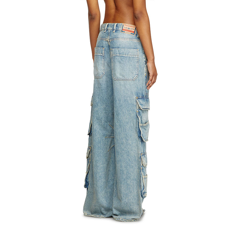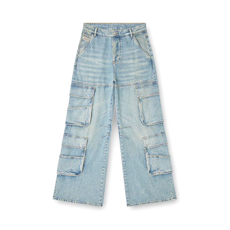 Relaxed fit with a low waist and low crotch, and extra-long wide leg. The loose, drapey silhouette is amplified by oversize cargo pockets. Button fly.