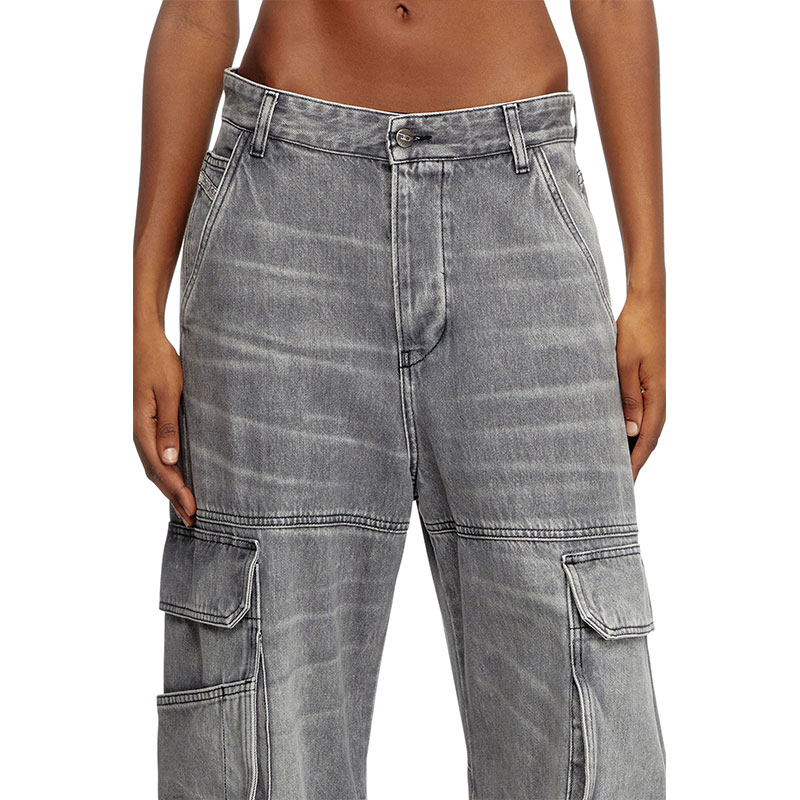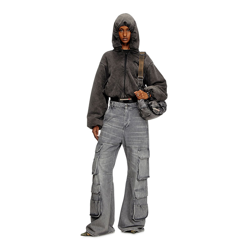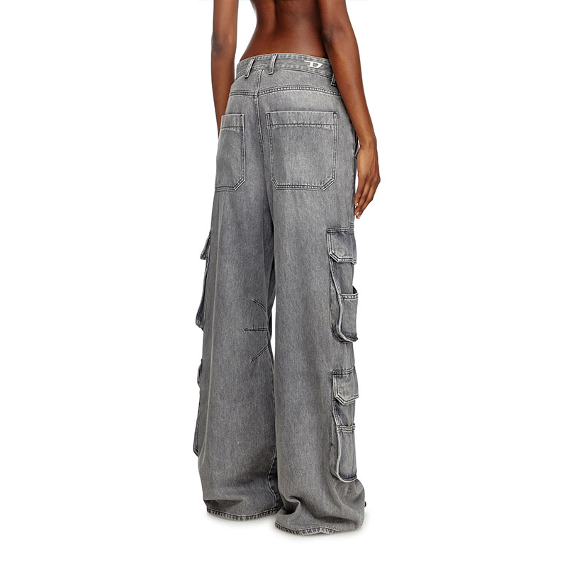 Relaxed fit with a low waist and low crotch, and extra-long wide leg. The loose, drapey silhouette is amplified by oversize cargo pockets. Button fly.