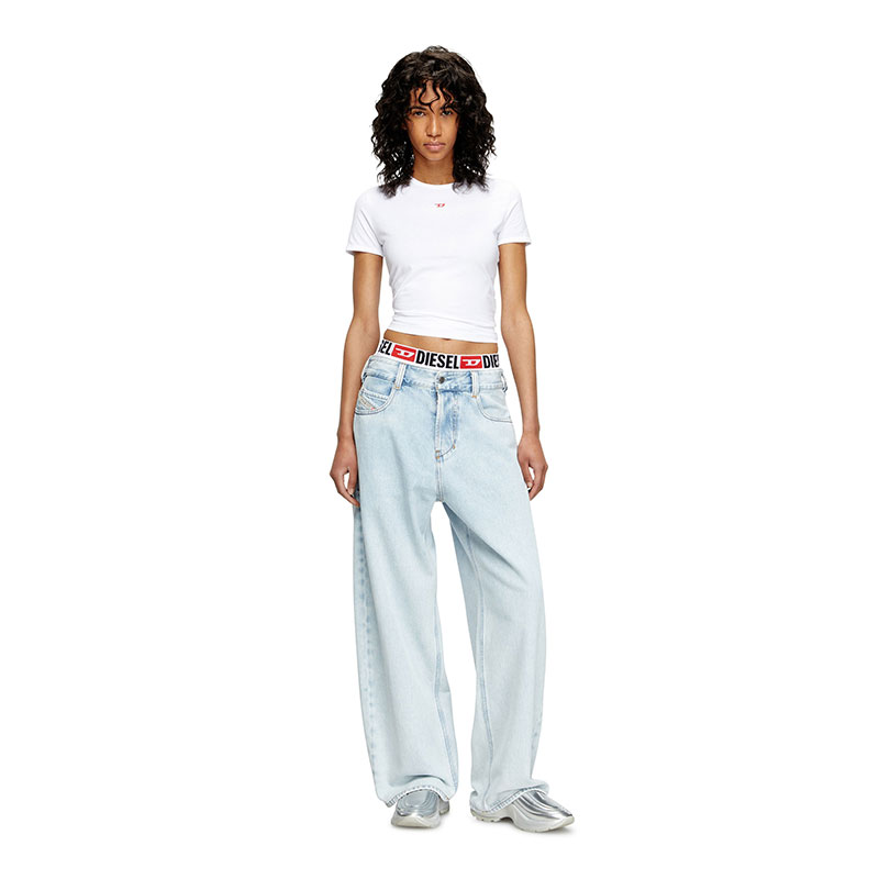 Crafted from fix denim using partially recycled cotton. The light blue, bleach-effect wash has a clean finish and is part of Diesel's iconic DNA selection.