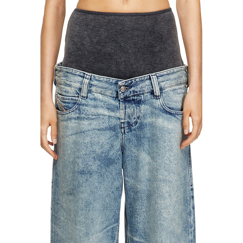 Part of the Runway Show collection, this medium blue wash features signature whiskers along the waistband. The lightly treated finish reflects Diesel's iconic aesthetic. Crafted from fix denim in cotton and hemp.