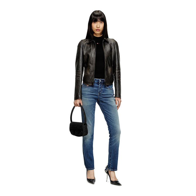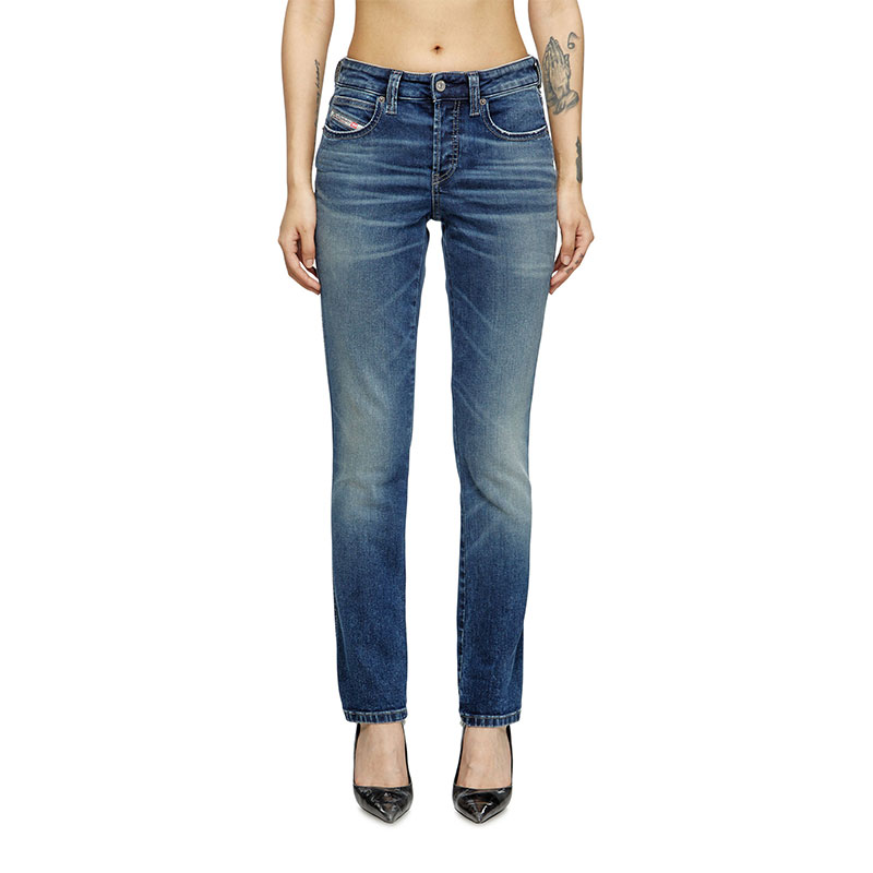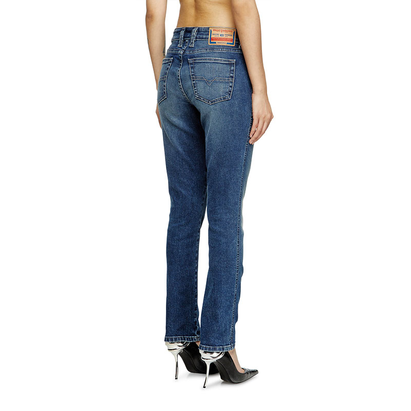 This garment features a medium blue wash, made from comfort denim in partially recycled cotton. Part of Diesel's DNA selection, it channels an authentic, subtly used look.