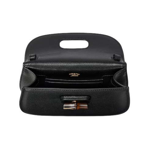 Introducing Spring Summer 2026. New small leather goods designs pay tribute to the Gucci Bamboo 1947 in a contemporary way. Crafted in soft leather, this style features an innovative closure mechanism which clicks open or close in two positions.