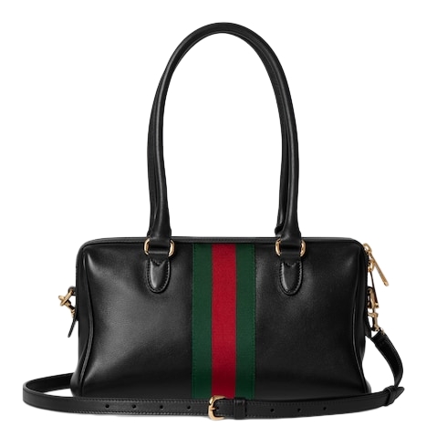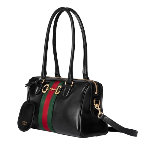 Horsebit, Web, and leather tag with "Made in Italy by Gucci" logo