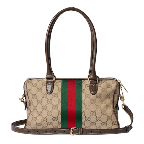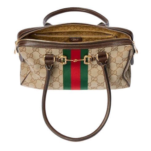 Introducing Spring Summer 2026. Borsetto is a wordplay that merges "borsa" (bag in Italian) and "morsetto" (Horsebit). The style is crafted from lightweight yet structured GG canvas in the vintage-inspired shade of sand, and reveals a new lining with Diamante motif taken from the archive.