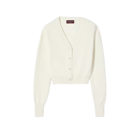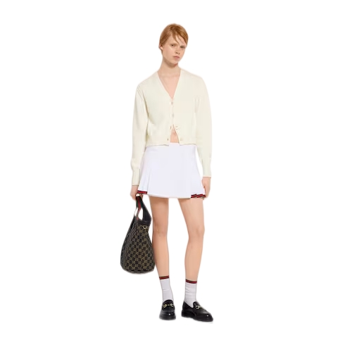 In the Cruise 2026 collection, women's ready-to-wear pieces celebrate the Gucci wardrobe, blending archival influence with the history of Florence in a playful mélange, ranging from the minimal to the maximal. Crafted from cotton, this cardigan is enriched with an Interlocking G embroidery.