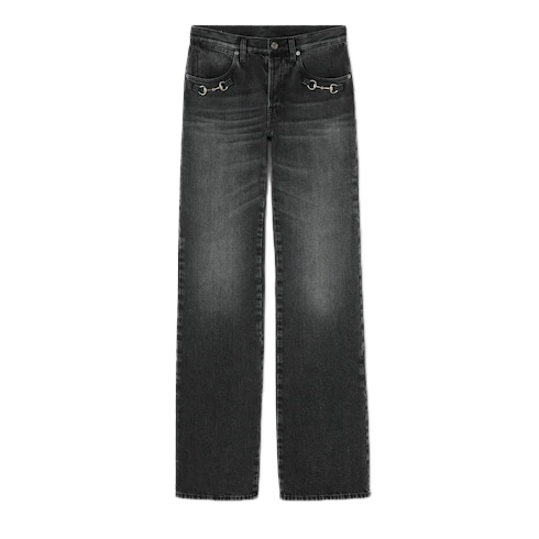 Introducing Spring Summer 2026. This style is part of the La Famiglia collection, which reinterprets the House’s codes through singular personalities and distinctive aesthetic attitudes. Crafted from bleached washed certified cotton denim, this pair of pants is defined by an Horsebit detail.