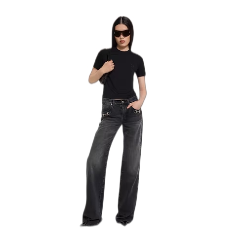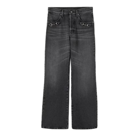Introducing Spring Summer 2026. This style is part of the La Famiglia collection, which reinterprets the House’s codes through singular personalities and distinctive aesthetic attitudes. Crafted stone bleached washed certified cotton denim, these pants are enriched with a Horsebit detail.