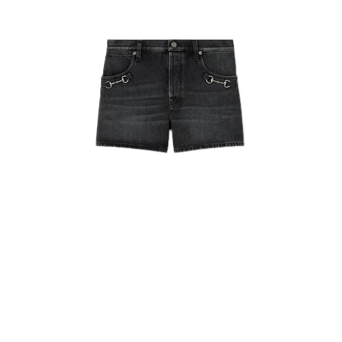 Introducing Spring Summer 2026. This style is part of the La Famiglia collection, which reinterprets the House’s codes through singular personalities and distinctive aesthetic attitudes. Crafted from stone bleached washed certified cotton denim, these shorts are enriched with a Horsebit detail.