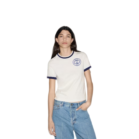 Sporty yet retro, Gucci's interpretation of activewear comes through in its Interlocking G logo in the new collection. The subtle motif, with just a touch of nostalgic inspiration, adorns this cotton jersey T-shirt, channelling a refined aesthetic.
