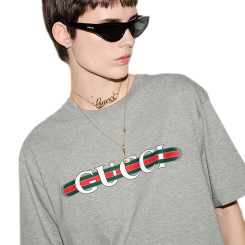 Gucci's House codes continue to evolve for the new season across relaxed T-shirts and jersey pieces. This regular fit T-shirt has been crafted from a cotton jersey and reveals a Gucci Web print.