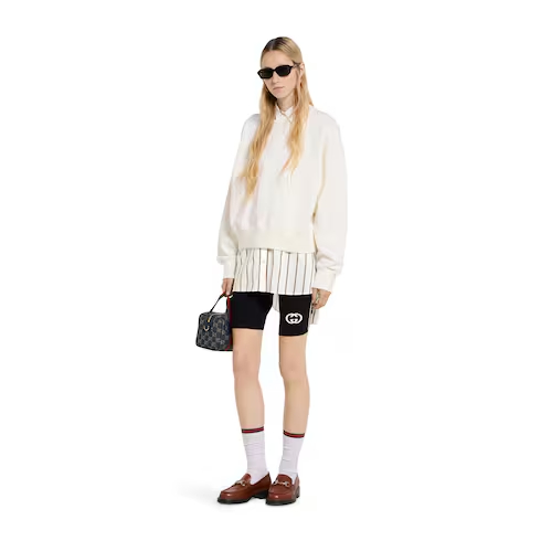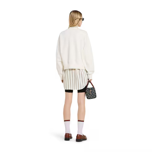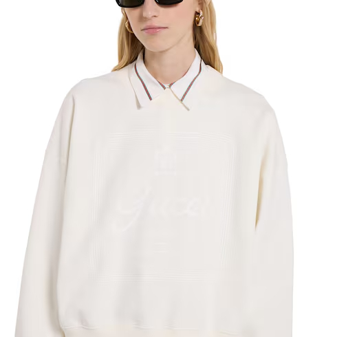 The Cruise 2026 women's ready-to-wear collection celebrates the Gucci wardrobe, blending archival influence with the history of Florence in a playful mélange, ranging from the minimal to the maximal. Crafted from cotton jersey, this sweatshirt is enriched with a 'Gucci Firenze since 1921' print.