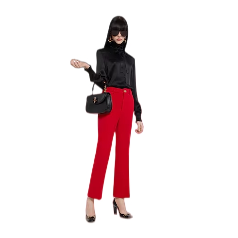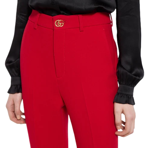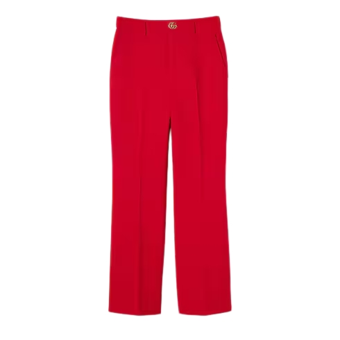 Introducing Spring Summer 2026. This style is inspired by the "Incazzata" look of La Famiglia. The collection reinterprets the House’s codes through singular personalities and distinctive aesthetic attitudes. Crafted from crêpe wool, this pair of pants is enriched with a Double G button.