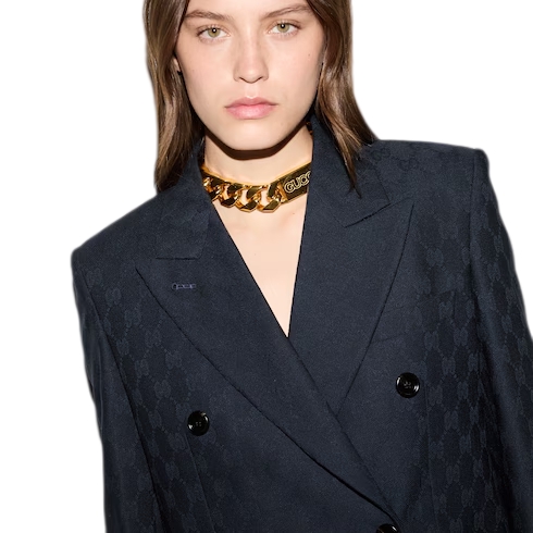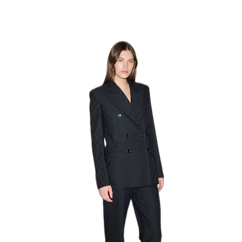 This piece is part of the Pre-Fall collection presenting a modern take on the essential wardrobe. This tailored double-breasted jacket features a regular fit, and is crafted from black wool in the iconic GG pattern. The signature shade further emphasizes the lightweight yet sophisticated material, for a fresh seasonal addition to your wardrobe.