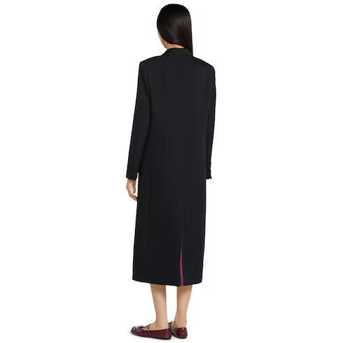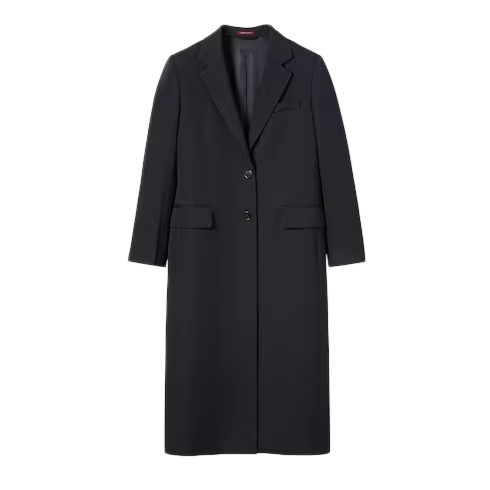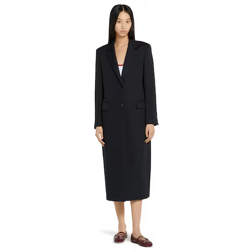 The Pre-fall 2025 collection introduces a new take on warm materials on sophisticated outerwear pieces, in traditional and contemporary silhouettes. This single-breasted double wool coat has a fitted waist to create an elegant final design.