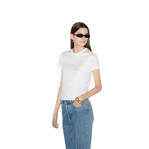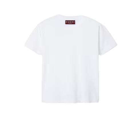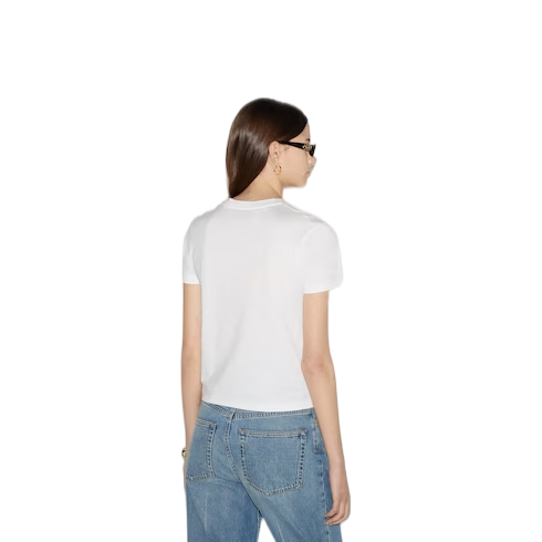 Inspired by the summer spirit and beach clubs on the Italian coast, this item is part of Gucci Lido. Emblematic codes of the House and refined patterns are reinterpreted in contemporary ways for the Pre-Fall collection. This T-shirt is crafted from white cotton jersey and enriched with a tonal Gucci embroidery across the neckline.