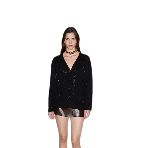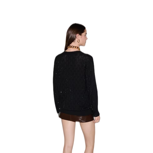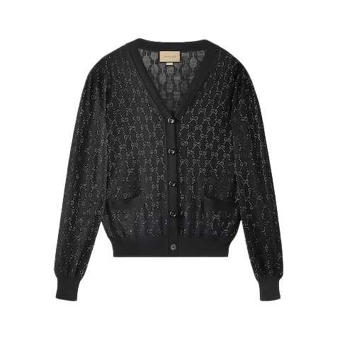 Versatility is key to the Pre-Fall 2023 collection, transitioning from weekdays to weekends with ease. This soft cardigan is presented in a striking black fine wool and enriched with a GG crystal embroidery. The dropped shoulder creates a relaxed silhouette, making for a playful piece that can be styled in endless ways.