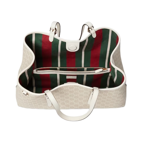The new GG Emblem collection reinterprets the House’s history of elegance and craftsmanship. This tote bag features numbered notches on the adjustable top handles, inspired by the equestrian world.