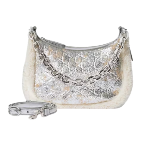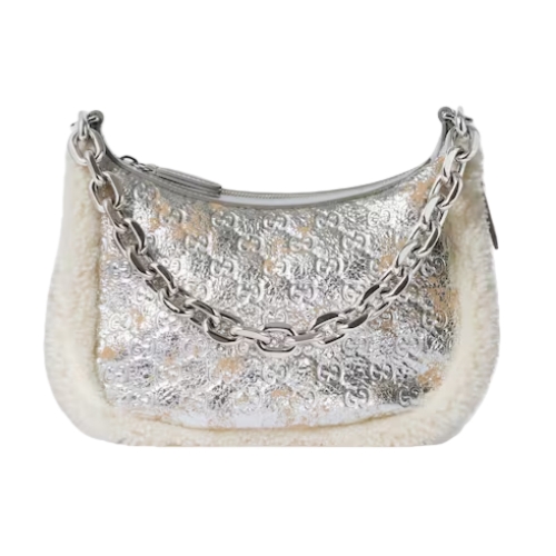 The GG Emblem collection reinterprets the House’s history of elegance and craftsmanship, introducing uniquely textured leather which imparts new light on the shoulder bag silhouette, complete with shearling trim.