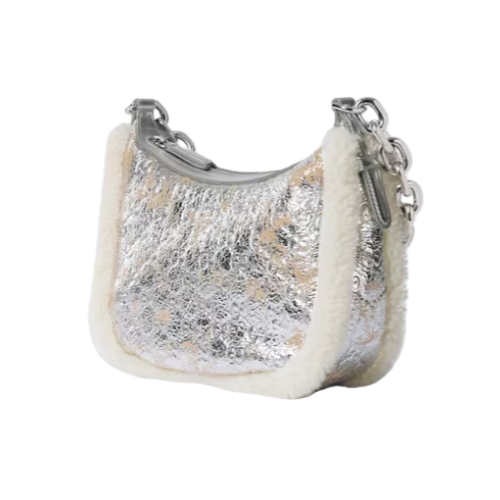 Metallic silver textured leather