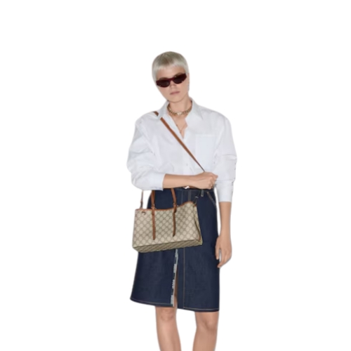 The new GG Emblem collection reinterprets the House’s history of elegance and craftsmanship. This tote bag features numbered notches on the adjustable top handles, inspired by the equestrian world.