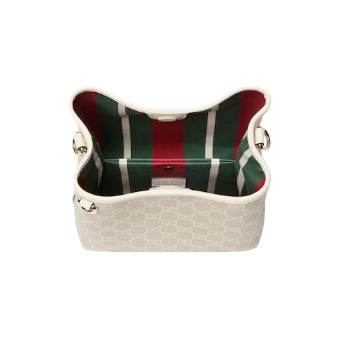 The new GG Emblem collection reinterprets the House’s history of elegance and craftsmanship. This bucket bag highlights functional design with an interior compartment.