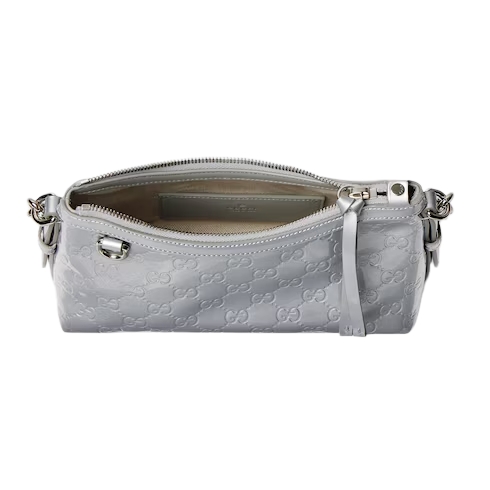 Metallic silver patent GG leather