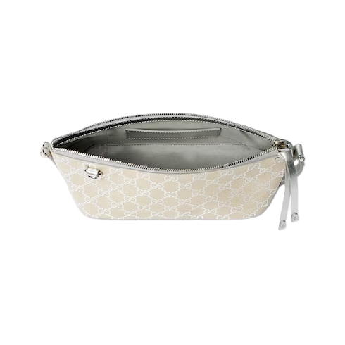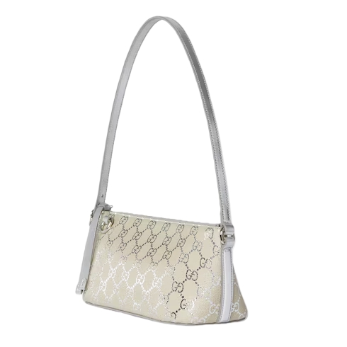 Light beige and metallic silver laminated-effect GG Monogram coated fabric