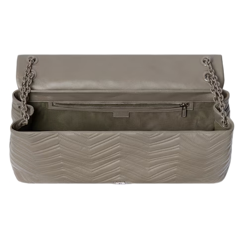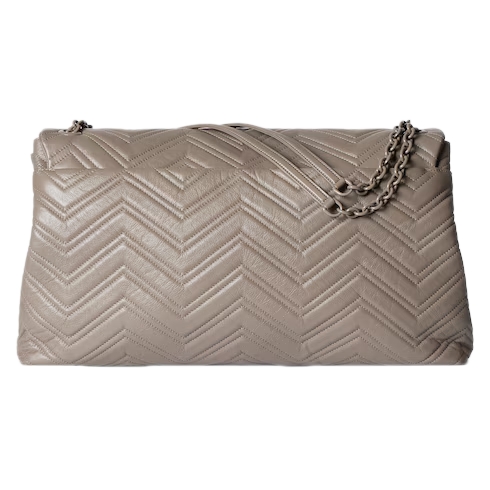 In the Fall Winter 2025 collection, the GG Marmont, a signature collection of the House, features the emblematic Double G, a faceted chain strap, and a soft, structured silhouette. This style is crafted from soft lightweight matelassé chevron leather and comes with a tonal enameled hardware and chain.