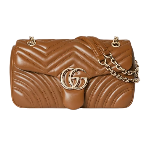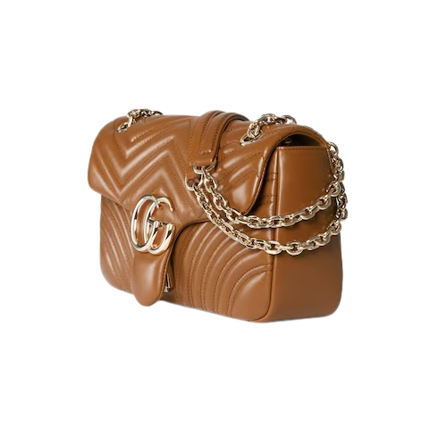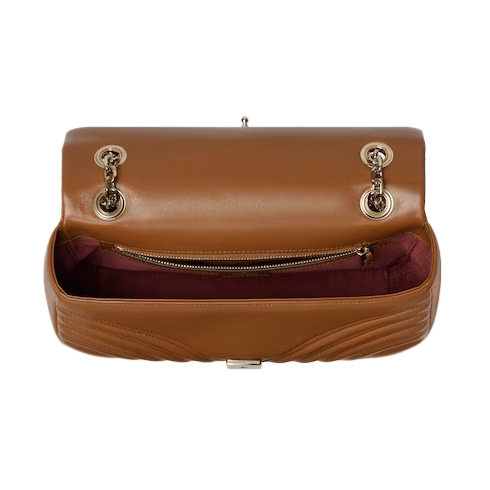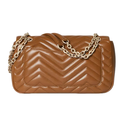 The GG Marmont, a signature collection of the House, features the Double G hardware, a faceted chain strap, and soft construction in an exceptionally supple leather. A sleek back pocket introduces a functional touch to the medium and large sizes.