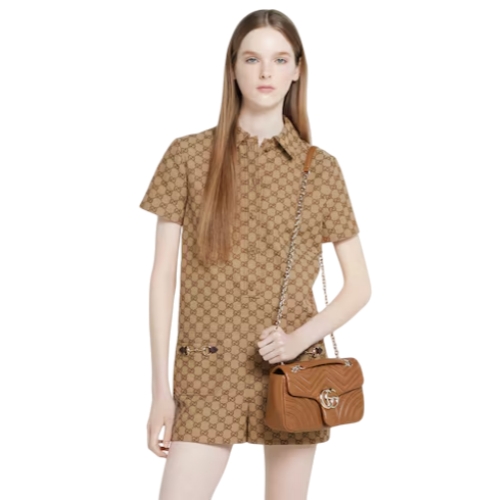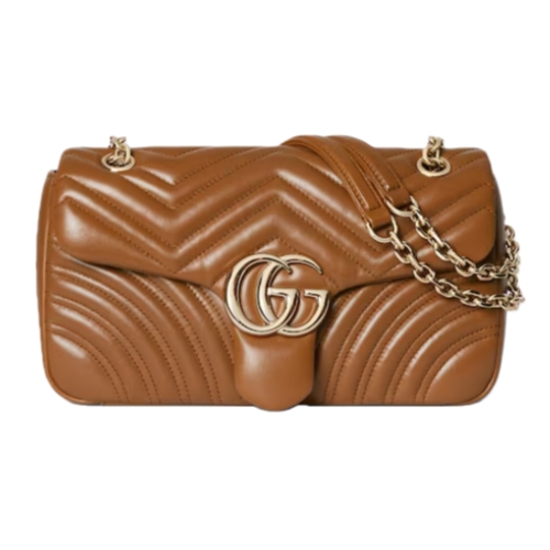 The GG Marmont, a signature collection of the House, features the Double G hardware, a faceted chain strap, and soft construction in an exceptionally supple leather. A sleek back pocket introduces a functional touch to the medium and large sizes.