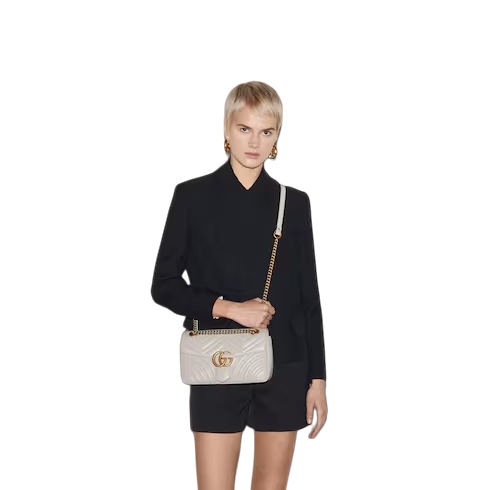 Pieces from the Spring Summer 2024 collection combine functionality with a stylish touch. Padded leather, fleece, and other fabrics are updated with new logo details. Here, the House's signature handbags present sumptuous materials like this light grey matelassé leather with the distinctive chevron pattern that blends traditional craftsmanship and contemporary design.