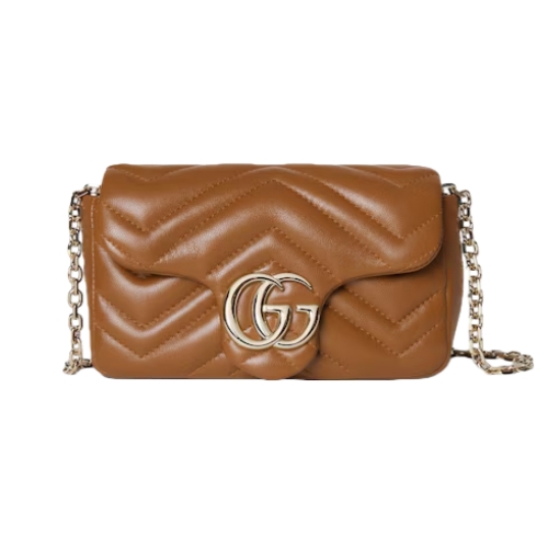 The GG Marmont, a signature collection of the House, features the Double G hardware, a faceted chain strap, and soft construction in an exceptionally supple leather. This mini bag is complete with the archival logo, first introduced in the 1970s.