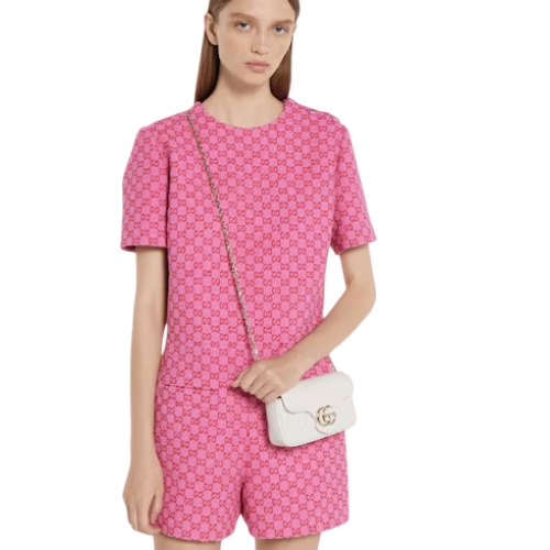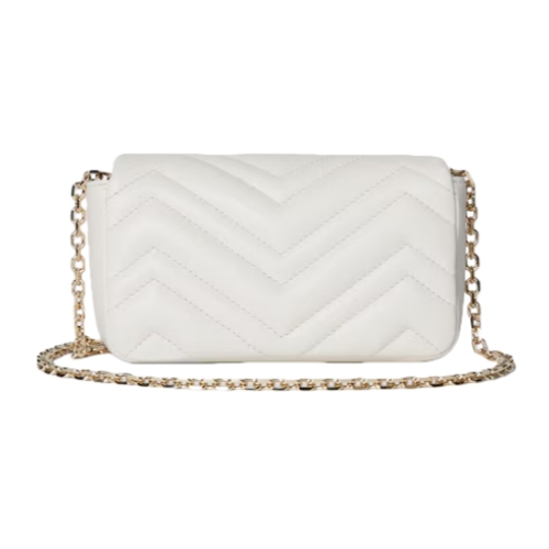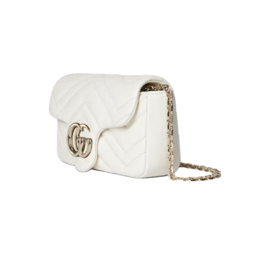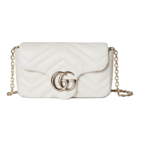 The GG Marmont, a signature collection of the House, features the Double G hardware, a faceted chain strap, and soft construction in an exceptionally supple leather. This mini bag is complete with the archival logo, first introduced in the 1970s.