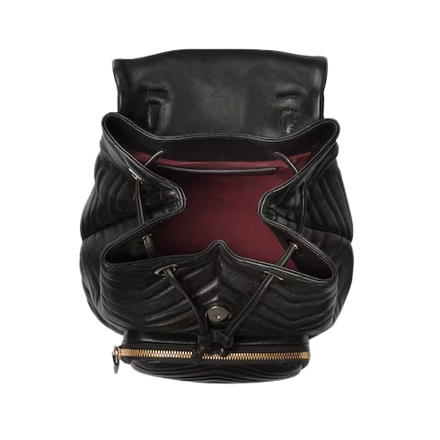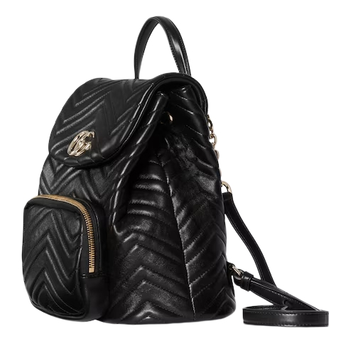 The GG Marmont, a signature collection of the House, features the emblematic Double G and a faceted chain strap on contemporary designs. The new backpack highlights fine craftsmanship with exceptionally supple leather and intricate hardware in light gold-toned finish.