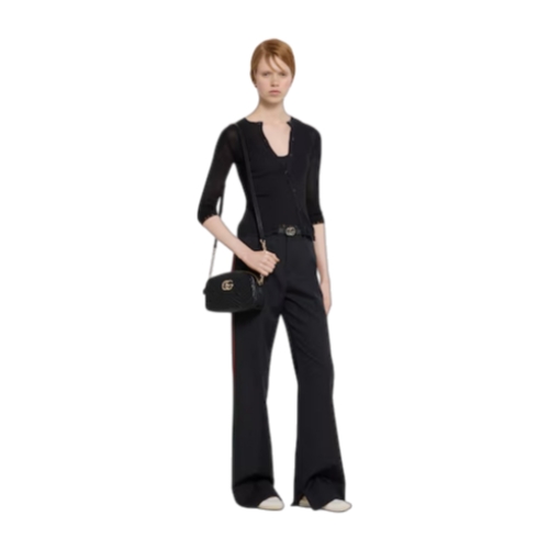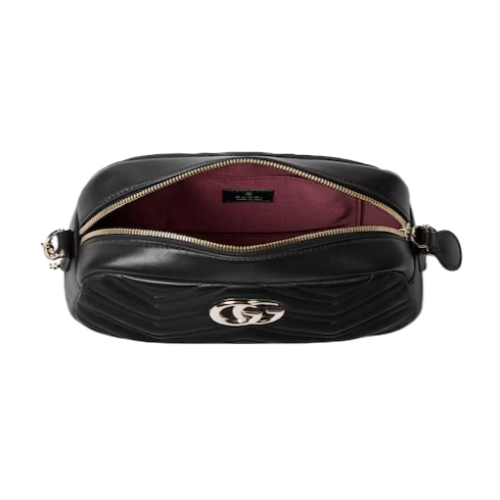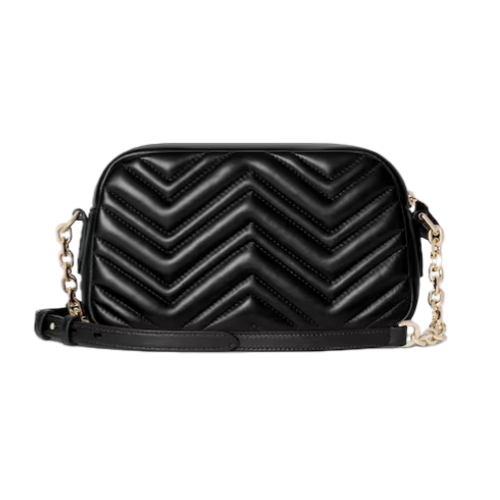 The GG Marmont, a signature collection of the House, features the emblematic Double G, a faceted chain strap, and contemporary silhouettes. The new camera bag highlights fine craftsmanship with exceptionally supple leather and intricate hardware details in light gold-toned finish.